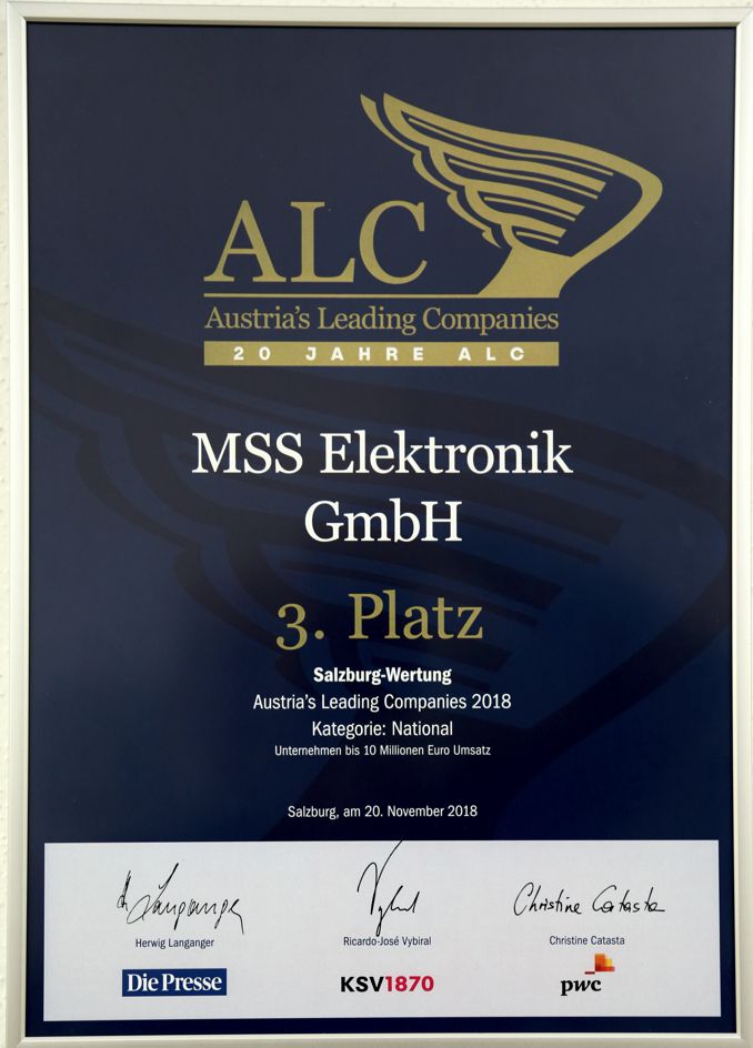 Und "Wir" waren dabei - MSS Elektronik GmbH belegte den 3. Platz in der Kategorie "Salzburg National bis 10 Millionen Euro Umsatz".