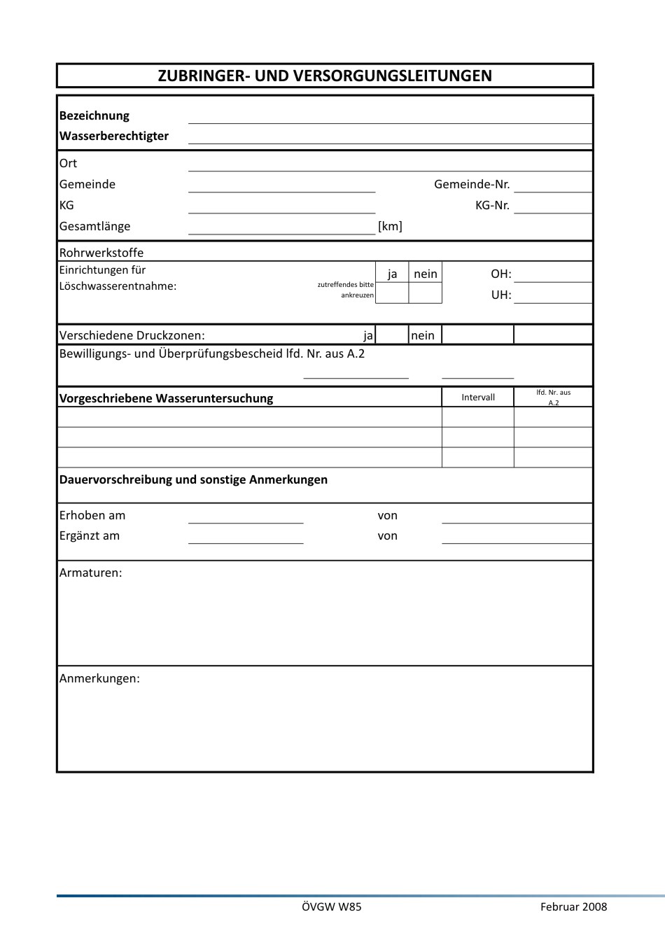 Als Formular der W85 Wassergewinnungsgebiet