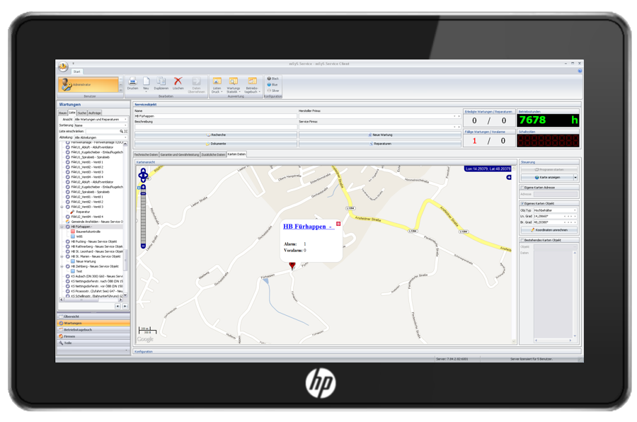 Es ist eine direkte Eingabe der durchgeführten Arbeiten oder Reparaturen inklusive der verwendeten Teile Vorort möglich, dadurch wird die Bedienung und Datenhaltung der gesamten Anlage erleichtert.
