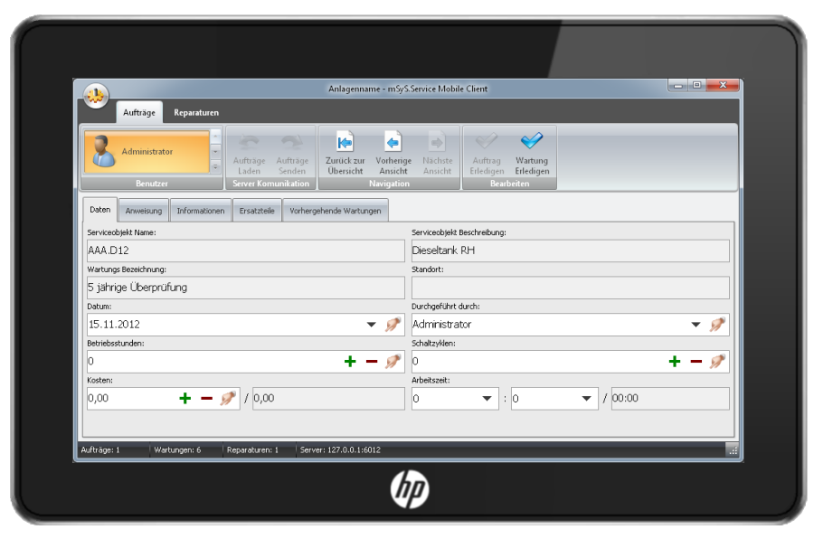 - Laden, bearbeiten und senden von Wartungsaufträgen und Reparaturen