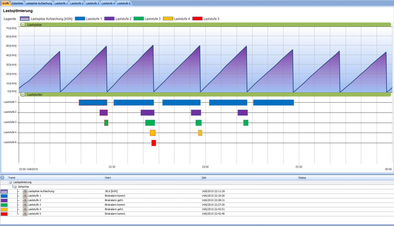 Beispiel für eine Lastspitzenoptimierung mit 5 Stufen: