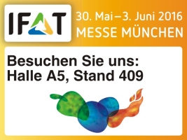 Wir freuen uns darauf, Sie auf der IFAT 2016 in der Halle A5 am Stand 409 begrüßen zu dürfen.