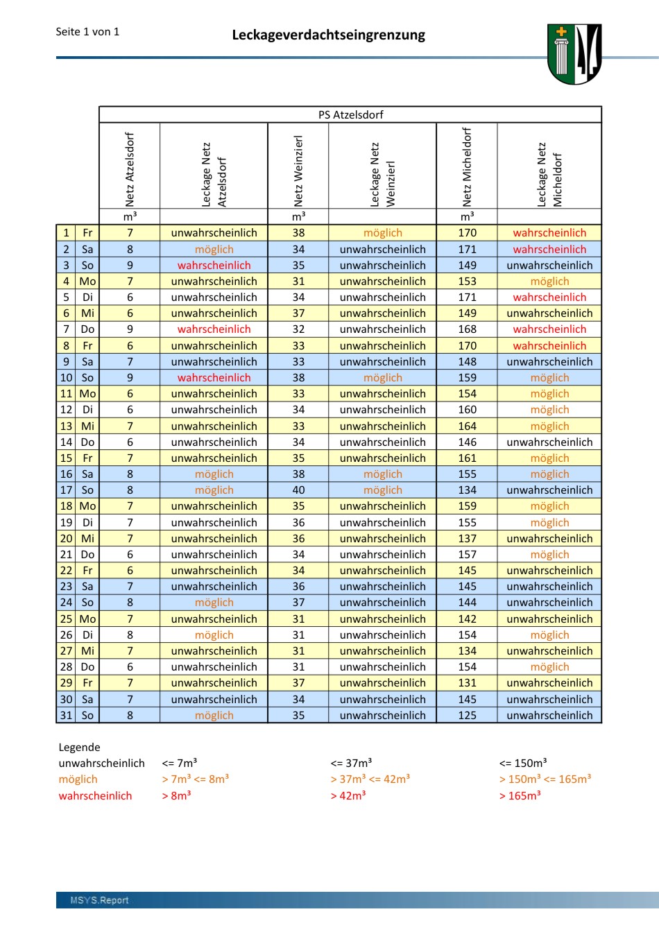 Betreff: mSyS.Report Die Art der Protokollierung von ATV über die Regelblätter bis zu den ÖVGW Normen |