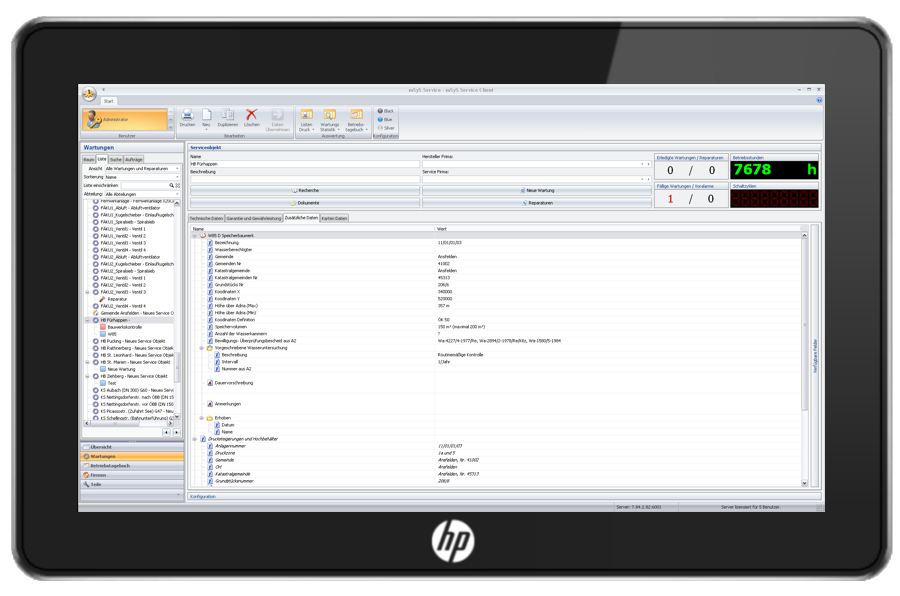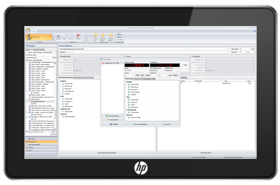 Es ist eine direkte Eingabe der durchgeführten Arbeiten oder Reparaturen inklusive der verwendeten Teile Vorort möglich, dadurch wird die Bedienung und Datenhaltung der gesamten Anlage erleichtert.