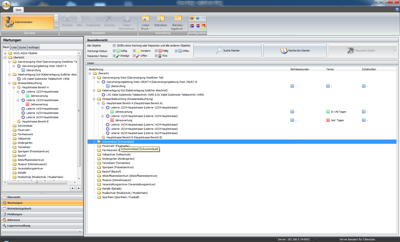 Die Service-Objekte sind über die gesamte Gemeinde verteilt - von selbst durchzuführenden Wartungen und Reparaturen bis hin zur Fremdvergabe an spezielle Wartungsfirmen.